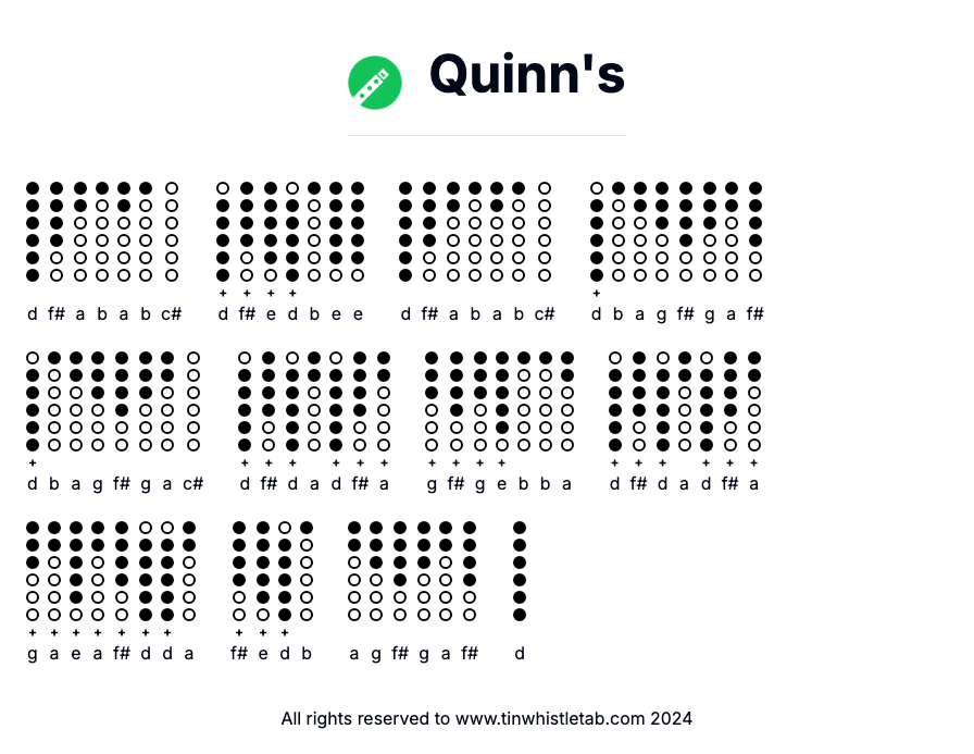 Quinn's - Tin Whistle Tab & Backing Track Readable and Easy to play