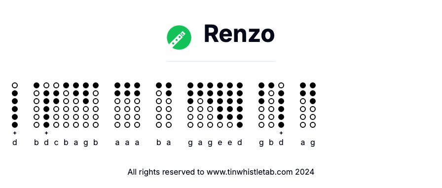 Discover "Renzo," a lively jig with an engaging melody. Perfect for honing your tin whistle skills with its unique note progressions and rhythm.