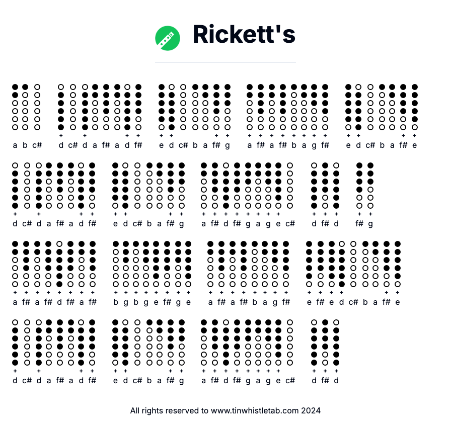 Rickett's - Tin Whistle Tab & Backing Track Readable and Easy to play