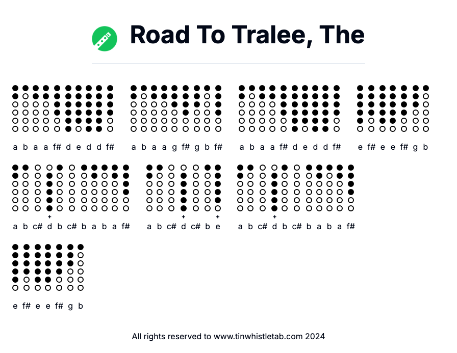 Road To Tralee, The - Tin Whistle Tab & Backing Track Readable and Easy to play