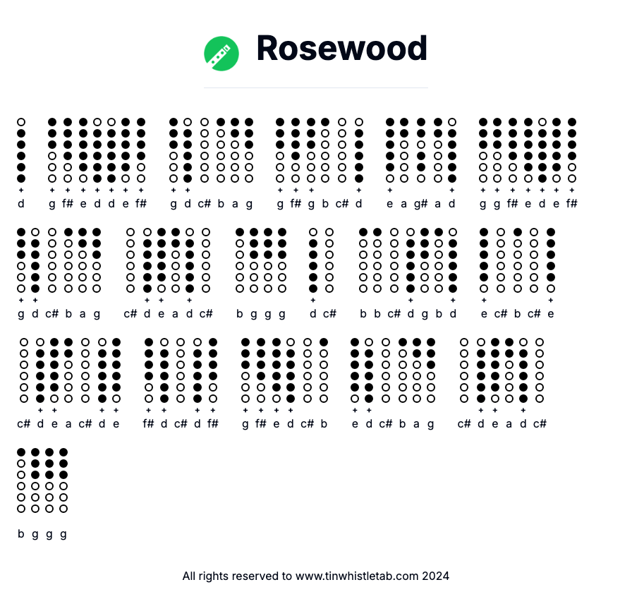 Rosewood - Tin Whistle Tab & Backing Track Readable and Easy to play