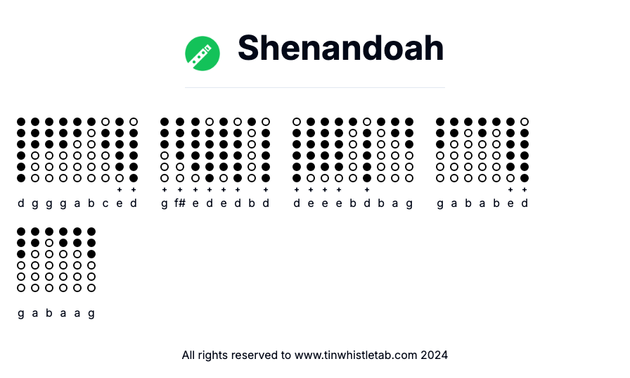 Explore the classic folk tune "Shenandoah," a soulful melody perfect for tin whistle. This piece features captivating phrasing and expressive dynamics.