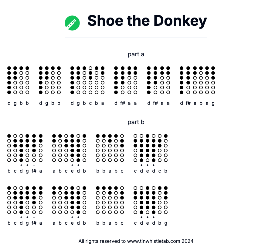 "Shoe the Donkey" is a lively jig perfect for beginners. It features catchy melodies and rhythmic patterns that enhance your tin whistle skills.