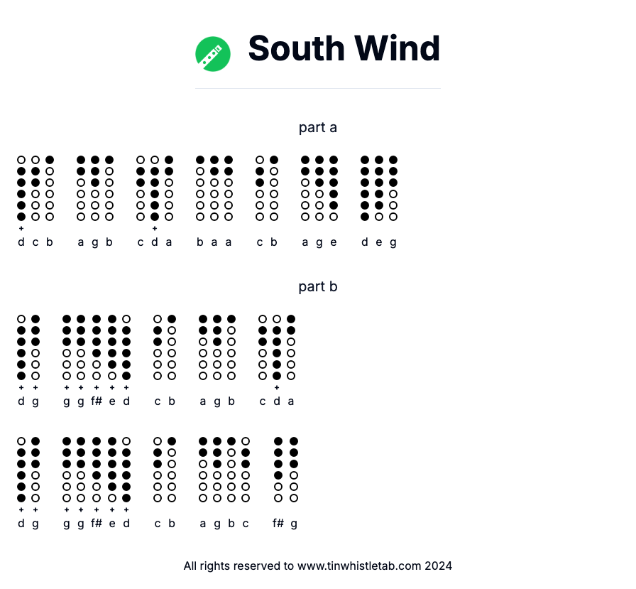 "South Wind" is a traditional Irish air, perfect for beginners. Its flowing melody showcases beautiful ornamentation and is often played in a lively 6/8 jig style.