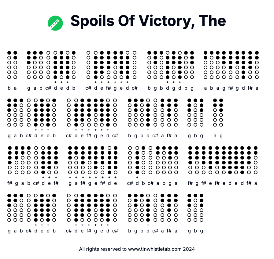 Spoils Of Victory, The - Tin Whistle Tab & Backing Track Readable and Easy to play