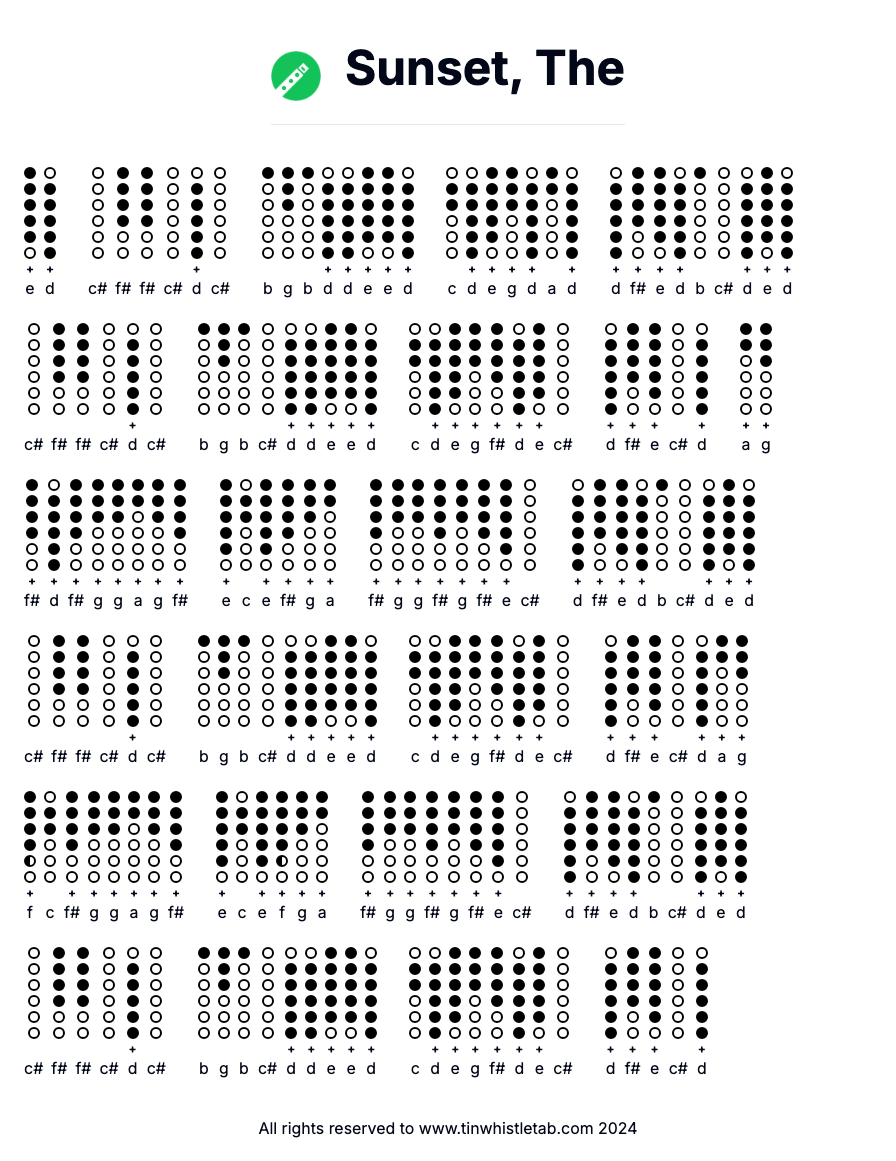 Sunset, The - Tin Whistle Tab & Backing Track Readable and Easy to play