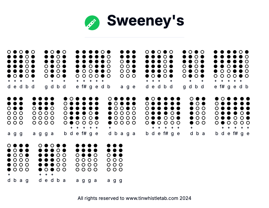 Sweeney's - Tin Whistle Tab & Backing Track Readable and Easy to play