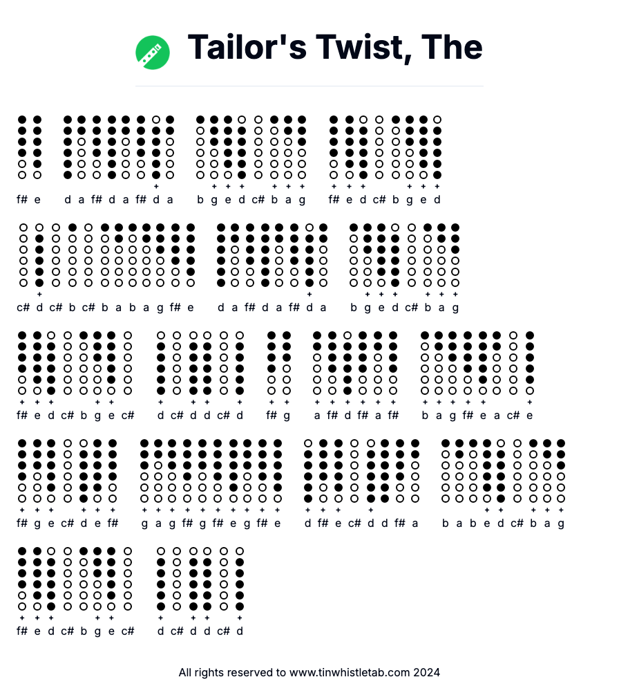 Tailor's Twist, The - Tin Whistle Tab & Backing Track Readable and Easy to play