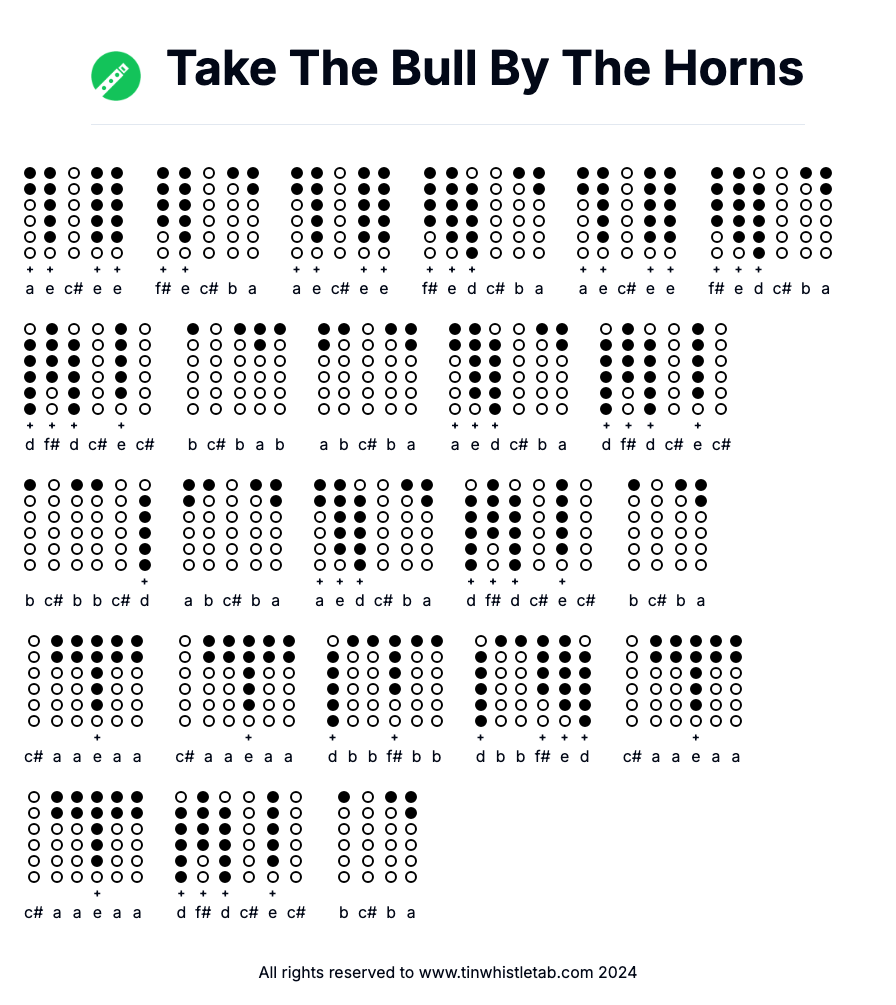 Take The Bull By The Horns - Tin Whistle Tab & Backing Track Readable and Easy to play