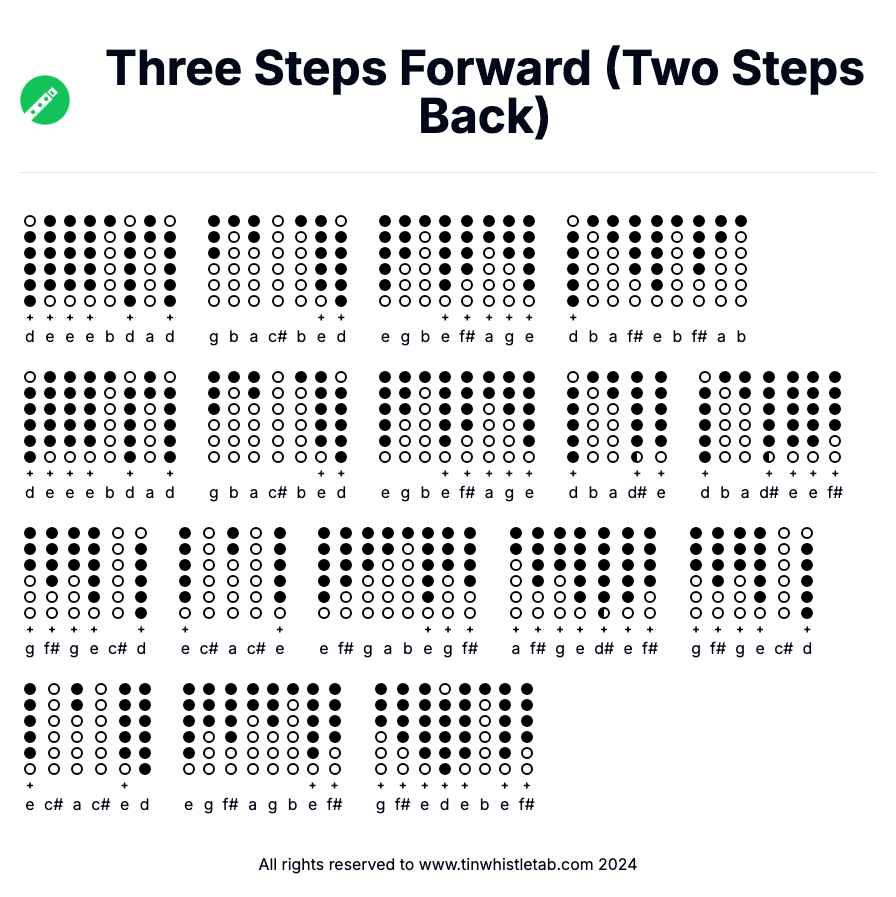 Three Steps Forward (Two Steps Back) - Tin Whistle Tab & Backing Track Readable and Easy to play