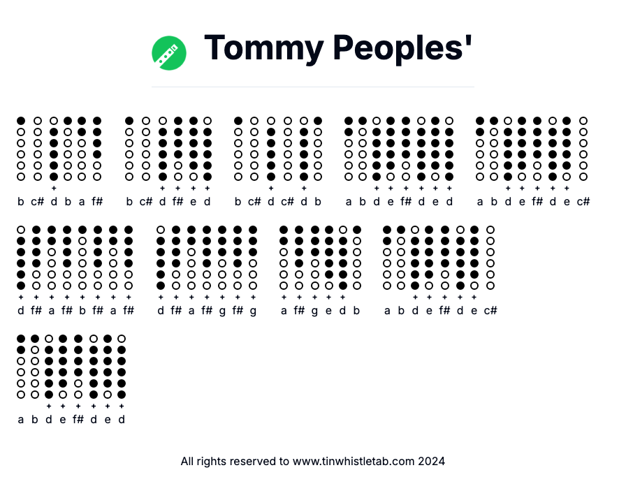 Tommy Peoples' - Tin Whistle Tab & Backing Track Readable and Easy to play