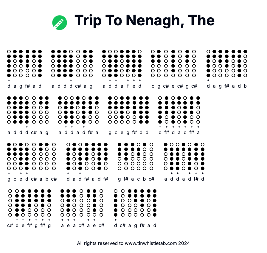 Trip To Nenagh, The - Tin Whistle Tab & Backing Track Readable and Easy to play