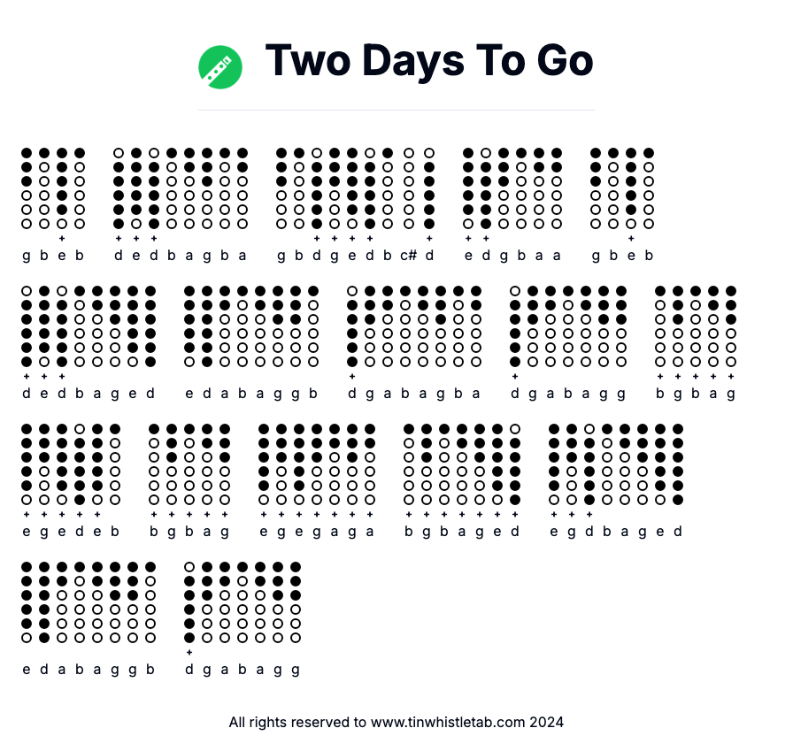 Two Days To Go - Tin Whistle Tab & Backing Track Readable and Easy to play