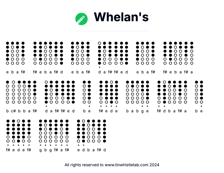 Whelan's - Tin Whistle Tab & Backing Track Readable and Easy to play