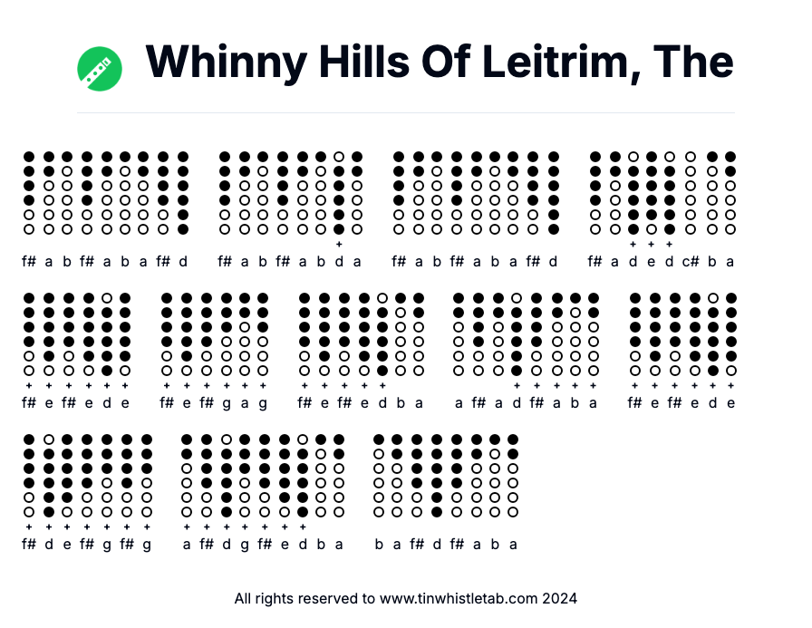 Whinny Hills Of Leitrim, The - Tin Whistle Tab & Backing Track Readable and Easy to play